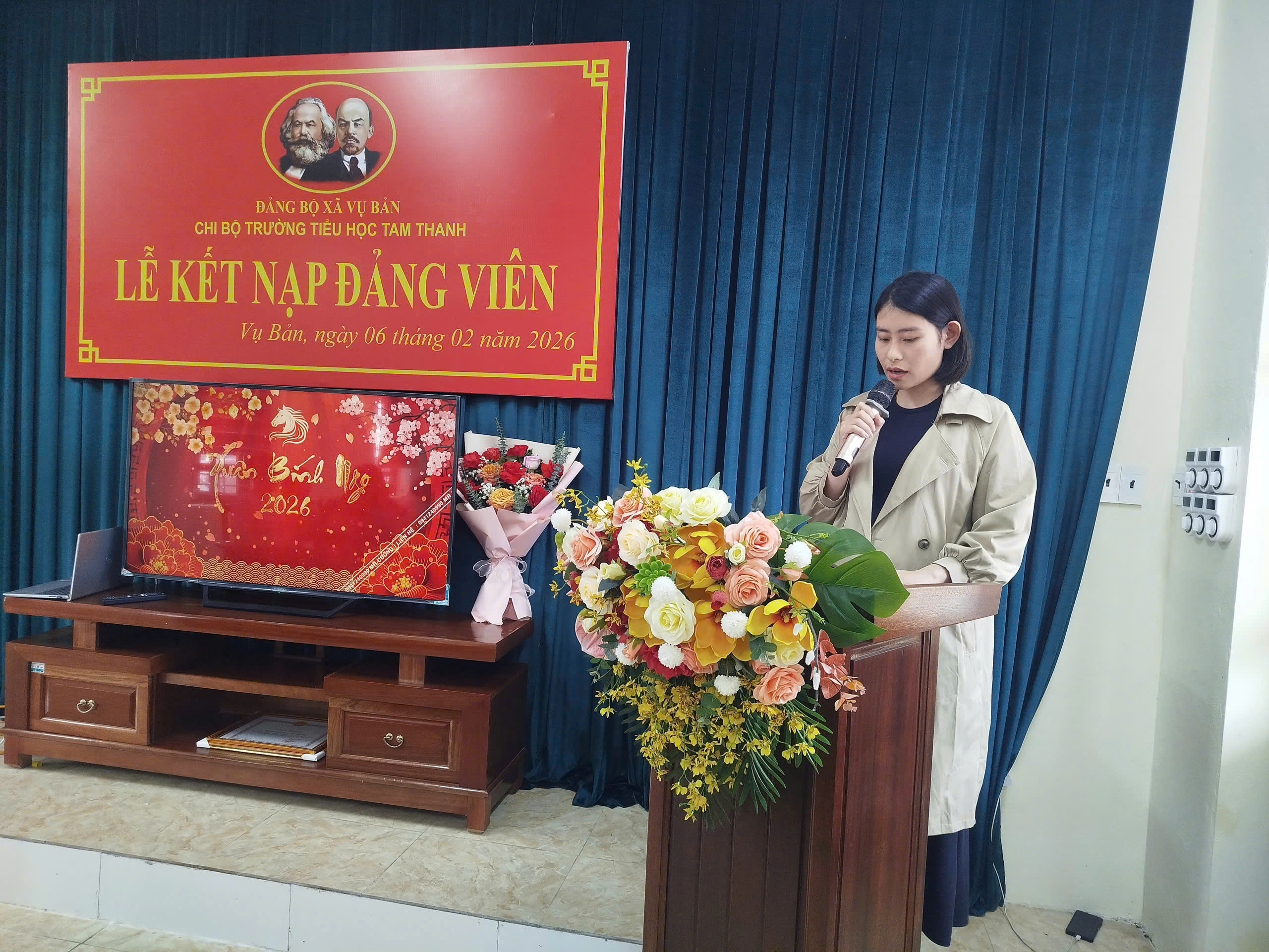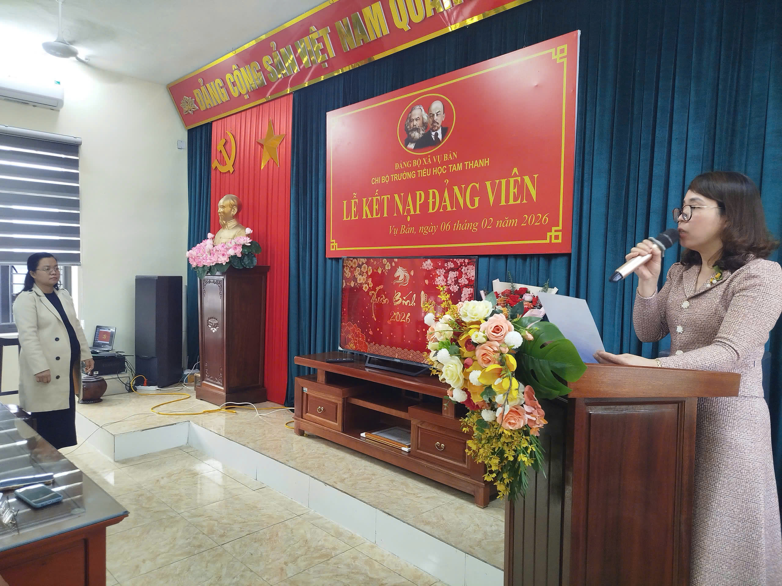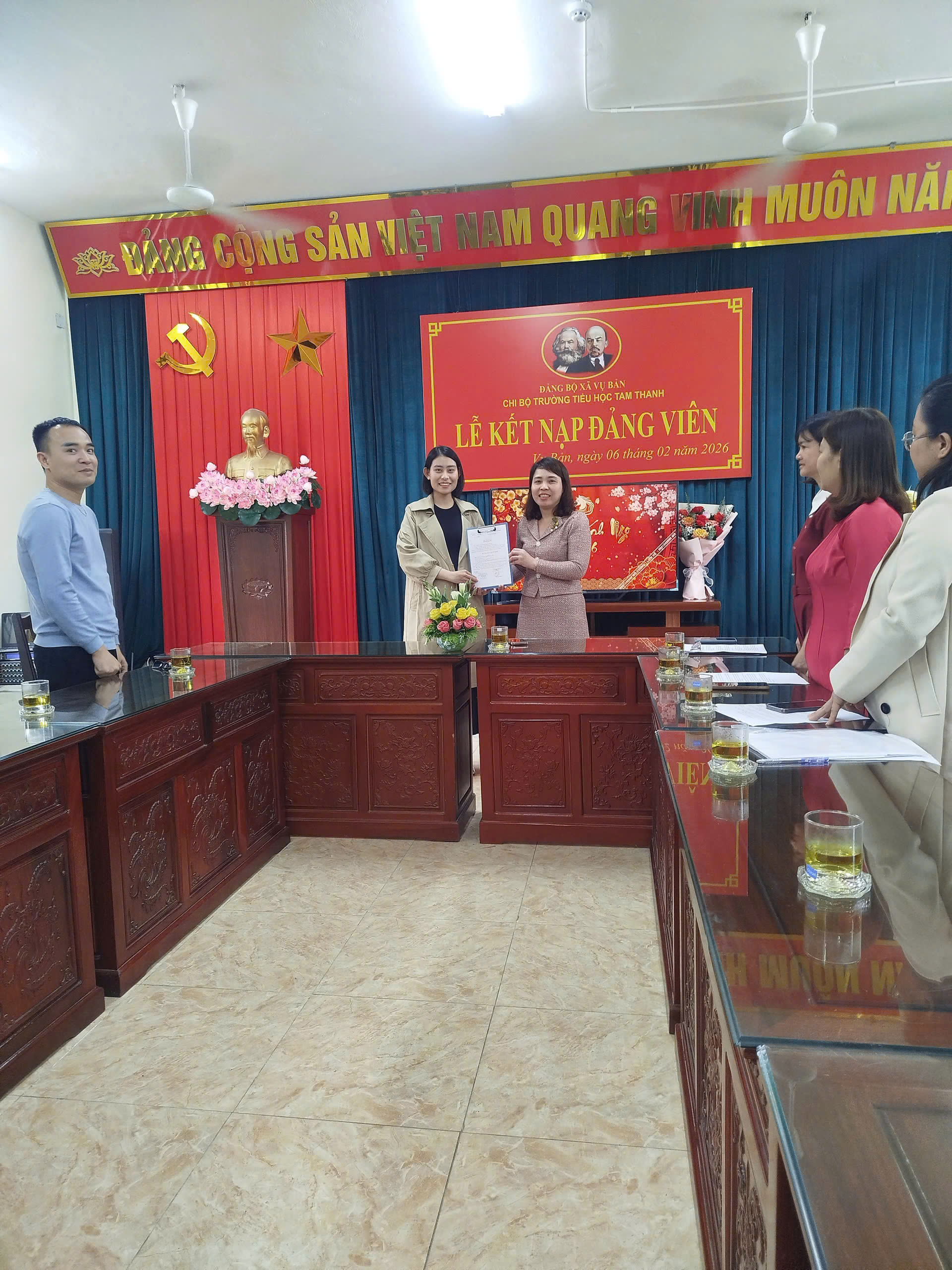 Chiều ngày 06/02/2026, Chi bộ Trường Tiểu học Tam Thanh long trọng tổ chức Lễ kết nạp Đảng viên cho các quần chúng ưu tú theo đúng trình tự, thủ tục quy định của Điều lệ Đảng Cộng sản Việt Nam.