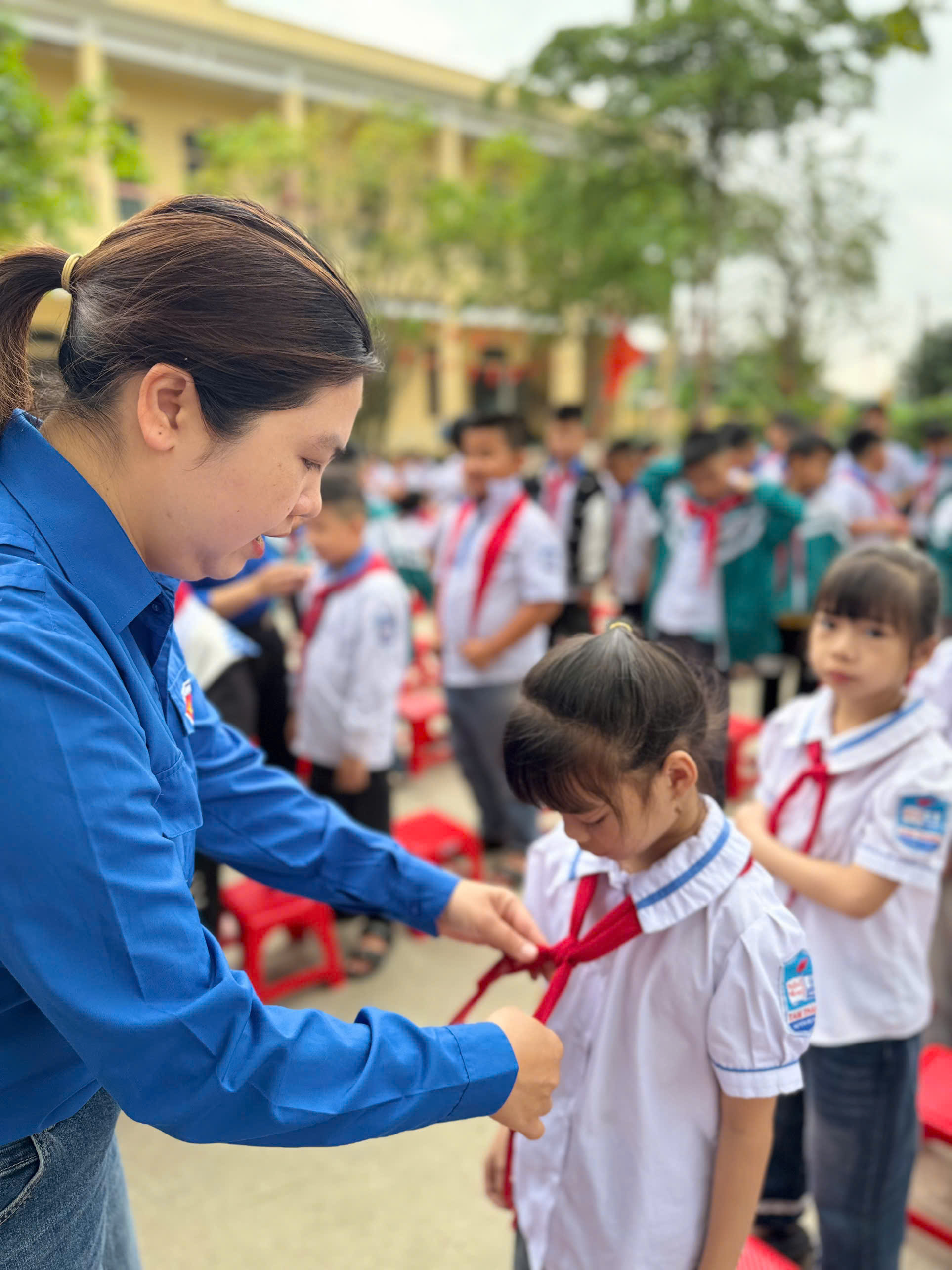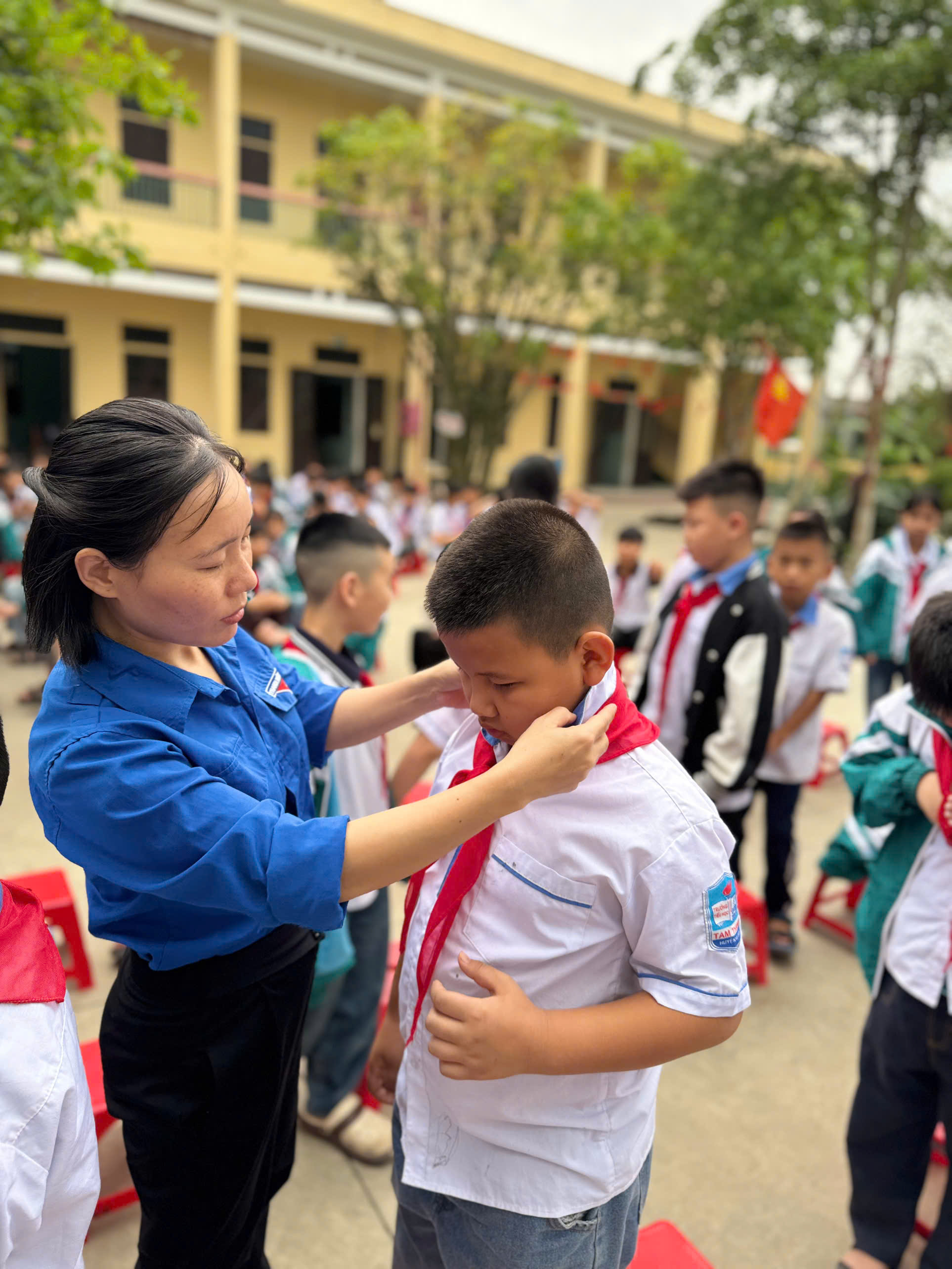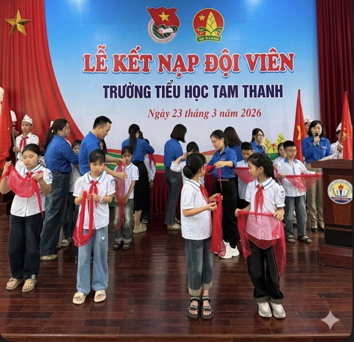 Thực hiện chương trình công tác Đội và phong trào thiếu nhi năm học 2025 – 2026, Liên đội Trường Tiểu học Tam Thanh đã long trọng tổ chức Lễ kết nạp Đội viên cho 111 em nhi đồng ưu tú, đủ điều kiện đứng vào hàng ngũ của Đội Thiếu niên Tiền phong Hồ Chí Minh. Buổi lễ diễn ra trong không khí trang nghiêm, ý nghĩa và đầy tự hào. Trước cờ Tổ quốc, cờ Đội và chân dung Bác Hồ kính yêu, các em học sinh đã thực hiện nghi thức kết nạp, vinh dự đeo trên vai chiếc khăn quàng đỏ – biểu tượng thiêng liêng của người đội viên. Lễ kết nạp không chỉ đánh dấu bước trưởng thành quan trọng của các em học sinh mà còn góp phần giáo dục truyền thống, bồi dưỡng lý tưởng sống đẹp, tinh thần học tập và rèn luyện theo 5 điều Bác Hồ dạy. Hy vọng rằng, từ dấu mốc ý nghĩa này, các đội viên mới sẽ luôn chăm ngoan, học giỏi, tích cực tham gia các hoạt động Đội, xứng đáng là con ngoan, trò giỏi, cháu ngoan Bác Hồ. Nhà trường xin chúc mừng các đội viên mới và tin tưởng rằng các em sẽ tiếp tục nỗ lực, phấn đấu để trở thành những đoàn viên ưu tú trong tương lai.